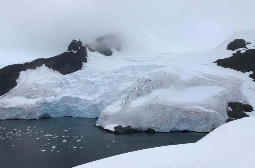 A glacier reaches the sea on the western Antarctic Peninsula, near Brown Station.
